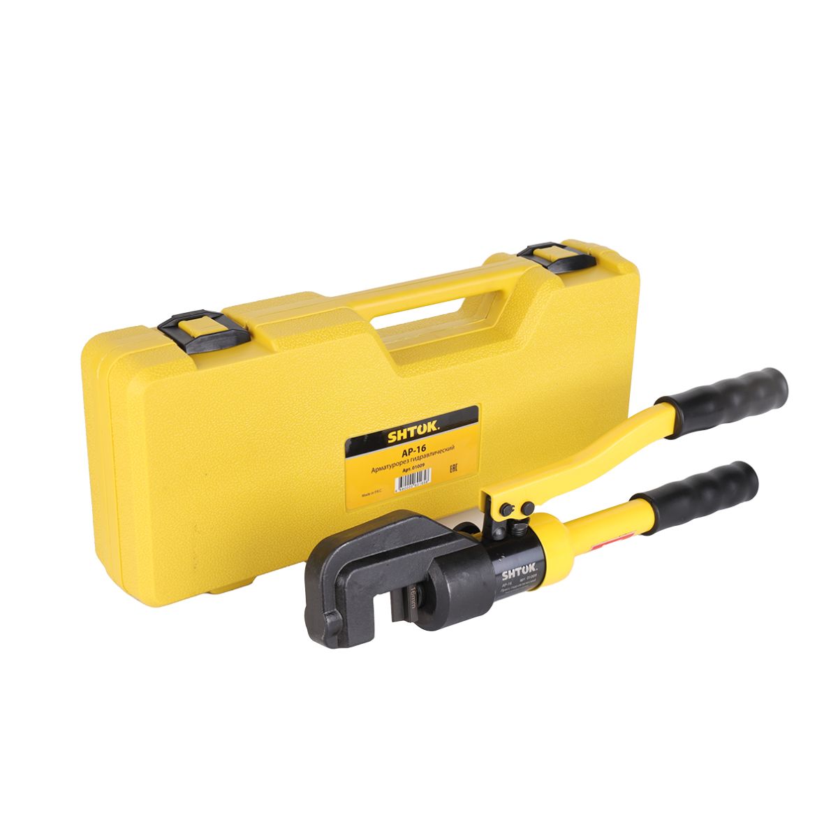 Ручной гидравлический арматурорез SHTOK АР-16 01009 обладают прочной конструкцией и небольшим весом для удобной и длительной работы. Предназначены для резки арматуры и прутков из низколегированной стали диаметром до 16 мм. Рабочая часть имеет ножи, которые надежно фиксируют заготовку. Открытая рабочая зона позволяет легко заводить арматуру внутрь и контролировать визуально процесс резки.