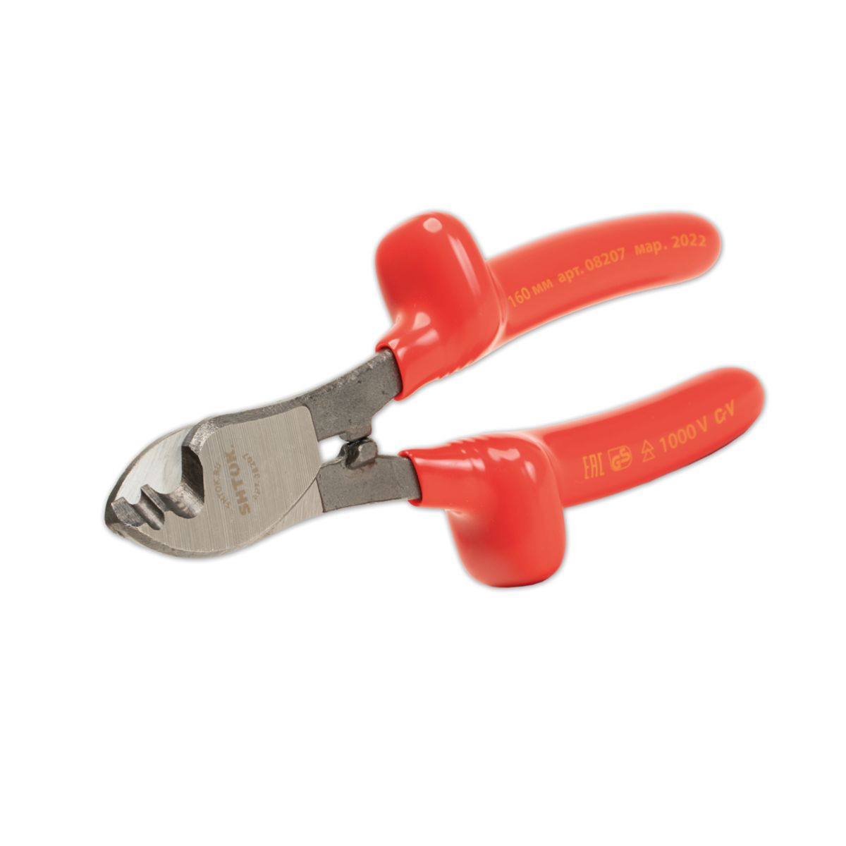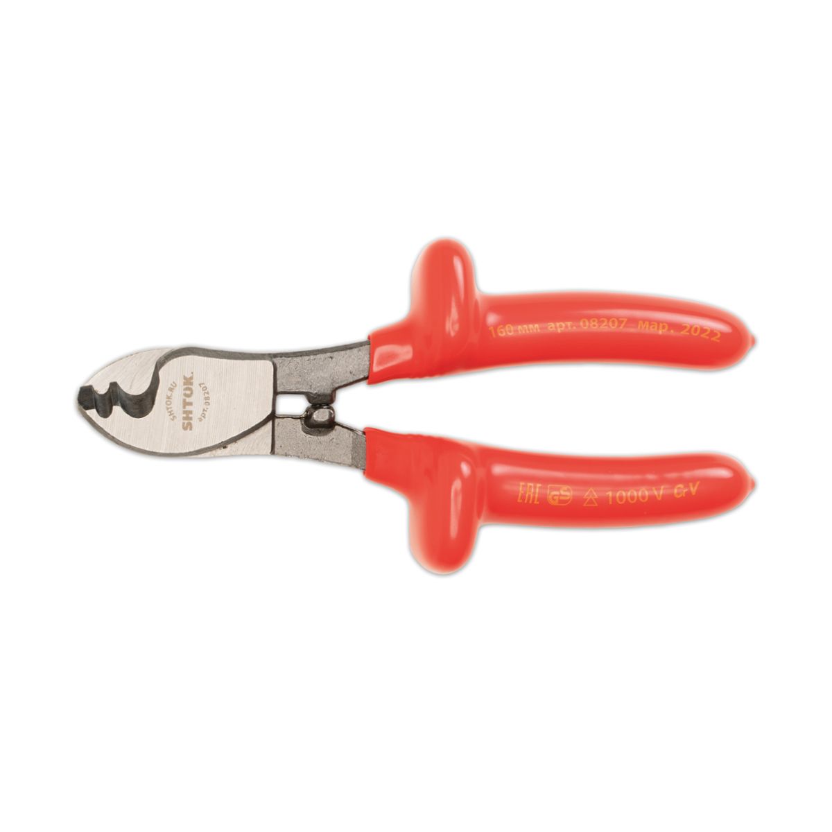 Диэлектрический кабелерез SHTOK 08207 используется для работы под напряжением. Инструмент выполнен из стали и оснащен удобными рукоятками. Предусмотрены специальные упоры на рукоятках для надежности удержания инструмента во время работы.