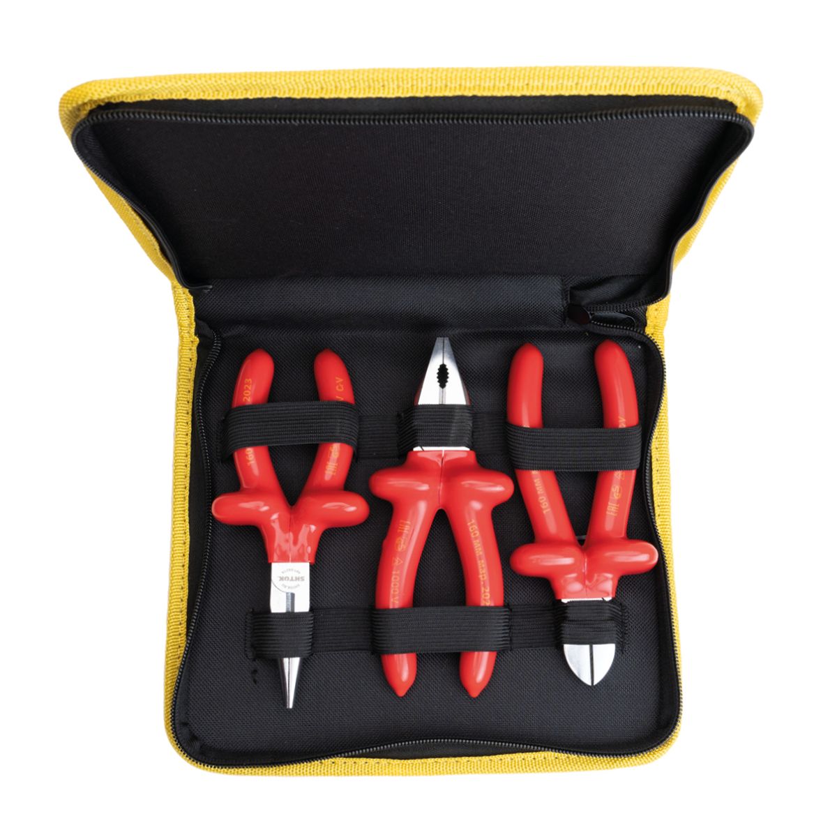 Набор диэлектрического инструмента позволяет работать с проводами и кабелями под напряжением до 1000В. Ручки с диэлектрическим покрытием из двухслойного материала обеспечивают безопасность и комфорт в работе. Рабочие части инструментов изготовлены из хромомолибденовой стали. Для хранения и транспортировки инструменты комплектуются пеналом.