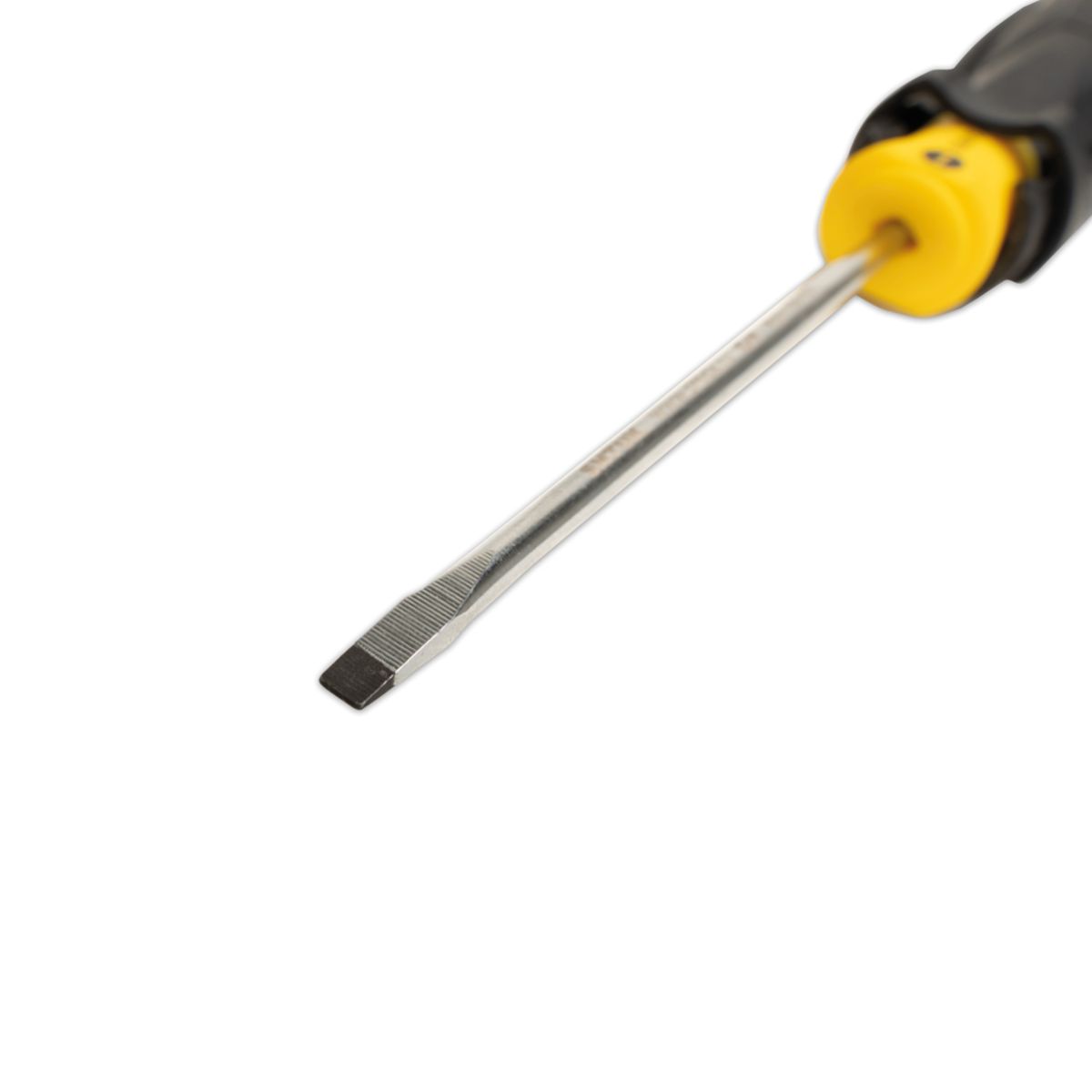 Шлицевая отвертка SHTOK 3.0x75 мм 09101 предназначена для работы с резьбовыми соединениями. За счет магнитного наконечника возможен монтаж в приборах, которые расположены вертикально. Рабочая часть изготовлена из термообработанной стали, увеличивающей срок службы отвертки.