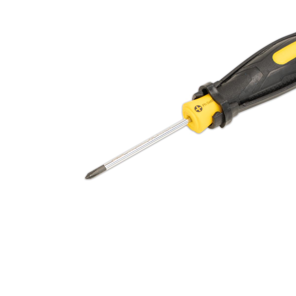 Крестовая отвертка SHTOK Ph0x60 мм 09106 оснащена двухкомпонентной рукояткой, обеспечивающей надежный хват. Вставки из термопластичного эластомера обеспечивают удобство работы инструментом. Магнитный наконечник позволяет осуществлять монтаж в расположенных вертикально приборах. Рабочая часть данной отвертки выполнена из термообработанной стали.