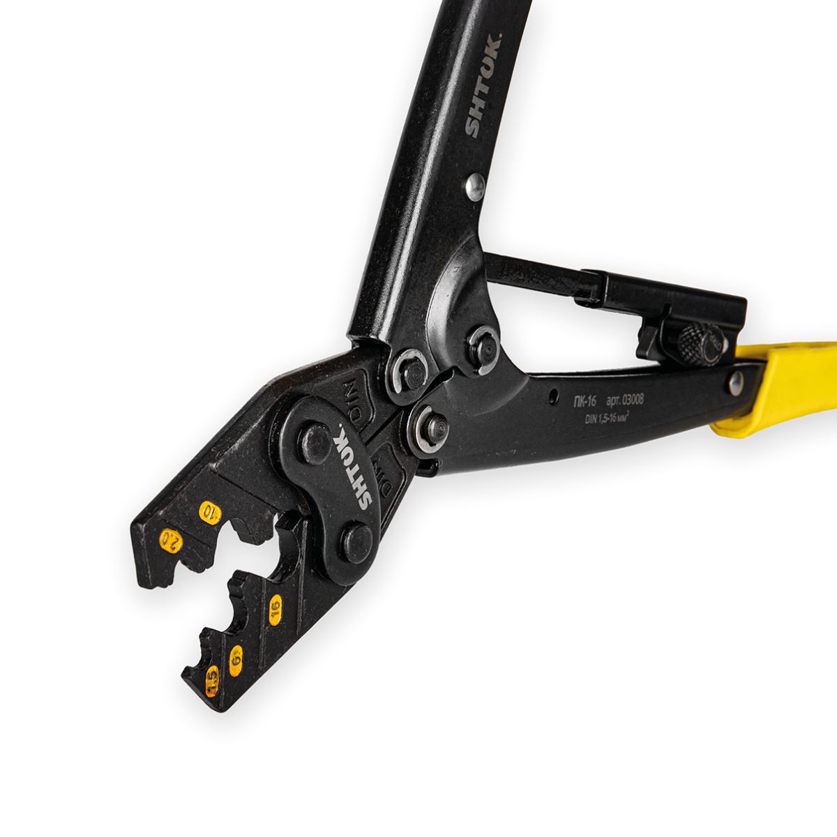 Ручные пресс-клещи SHTOK ПК-16 03008 представляют собой небольшой удобный инструмент, для работы с маленькими сечениями. Рассчитан на опрессовку наконечников площадью до 16 мм2.