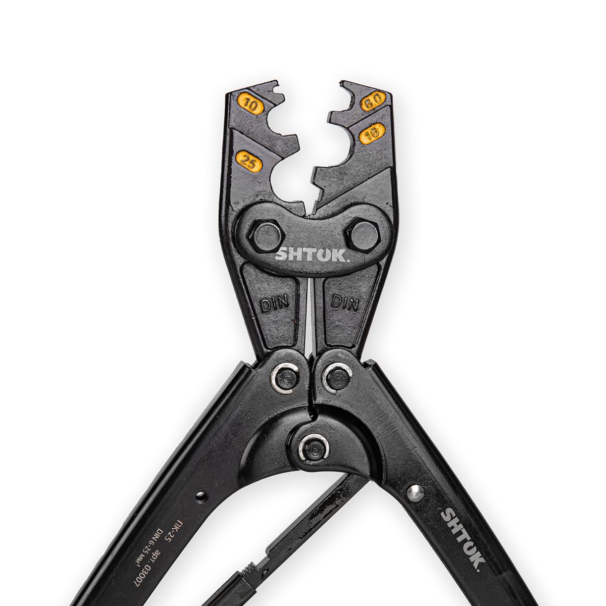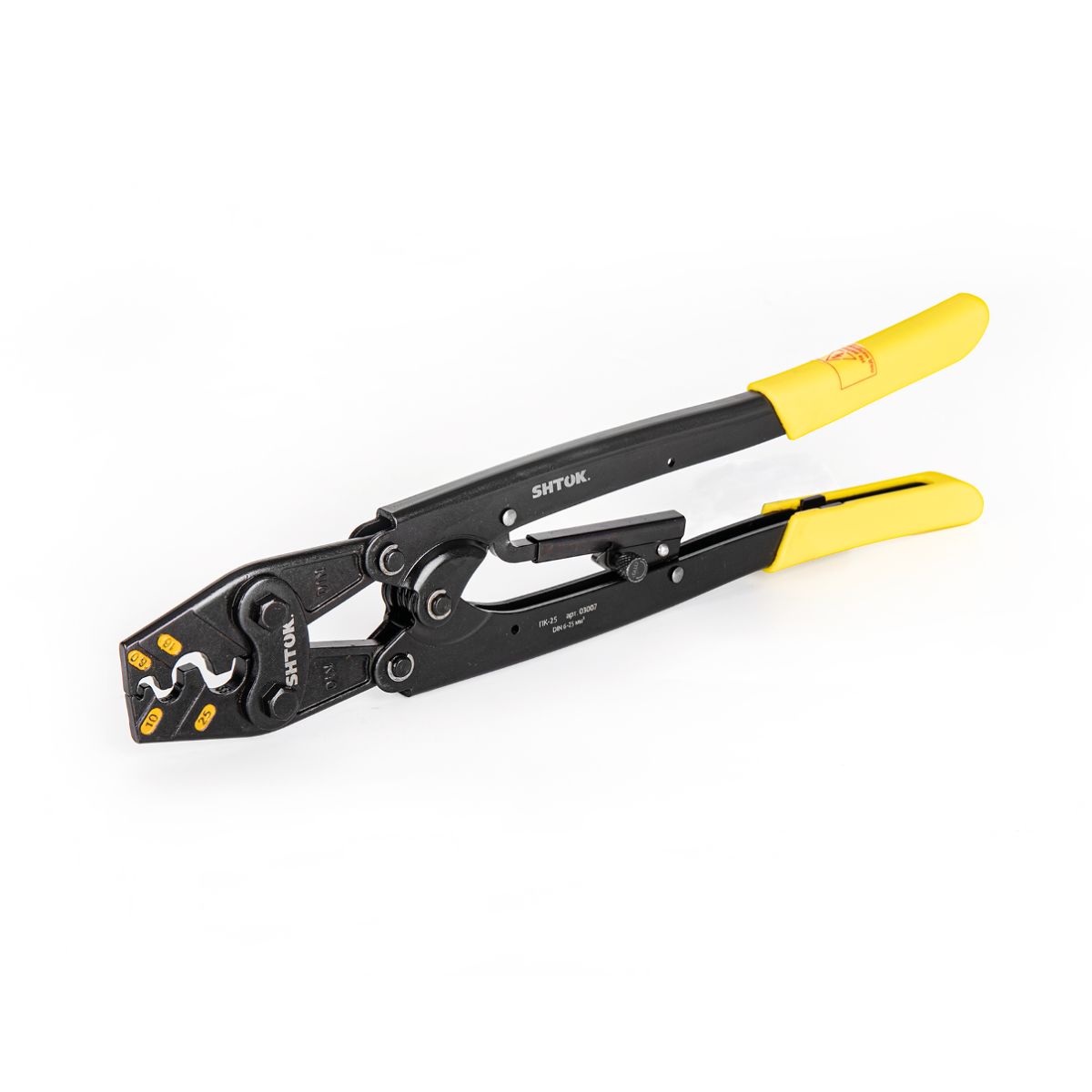 Ручные пресс-клещи SHTOK ПК-25 03007 предназначены для опрессовки наконечников. По окончанию работы происходит автоматическая разблокировка инструмента. Данная модель предназначена для малых и средних сечений.