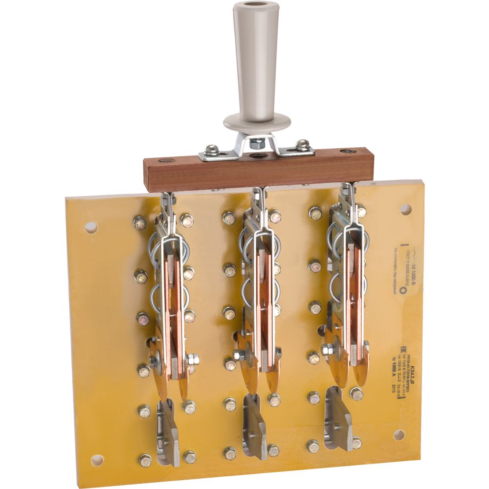 Разъединитель 3 полюсный на номинальный ток 1000 А, где установлена несъемная рукоятка, а механическая износостойкость составляет 6300 циклов.