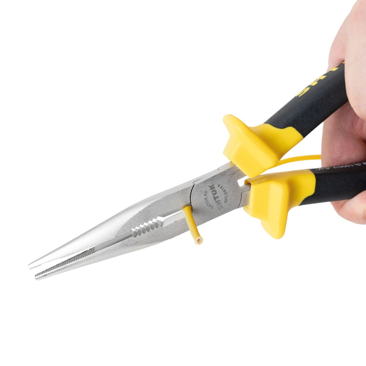 Диэлектрические тонкогубцы SHTOK 8113 представляют собой прочный и удобный для использования в труднодоступных местах шарнирно-губцевый инструмент. Тонкогубцы применяются для сгибания и разгибания пластин, проволоки, прутков. Тонкие и длинные кончики позволяют выполнять более точную работу и захватывать мелкие детали. Длина инструмента - 210 см. Хромованадиевые губки имеют никелированное покрытие, которое служит для защиты от коррозии. Двухкомпонентный материал обеспечивает комфортное применение, так как тонкогубцы не скользят в руке. Насечки на губках инструмента защищают от выскальзывания предметов из зажима.