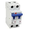 Модульный автоматический 2 полюсный выключатель переменного тока с предельной коммутационной способностью при переменном токе 10 кА на номинальный ток 1 А .