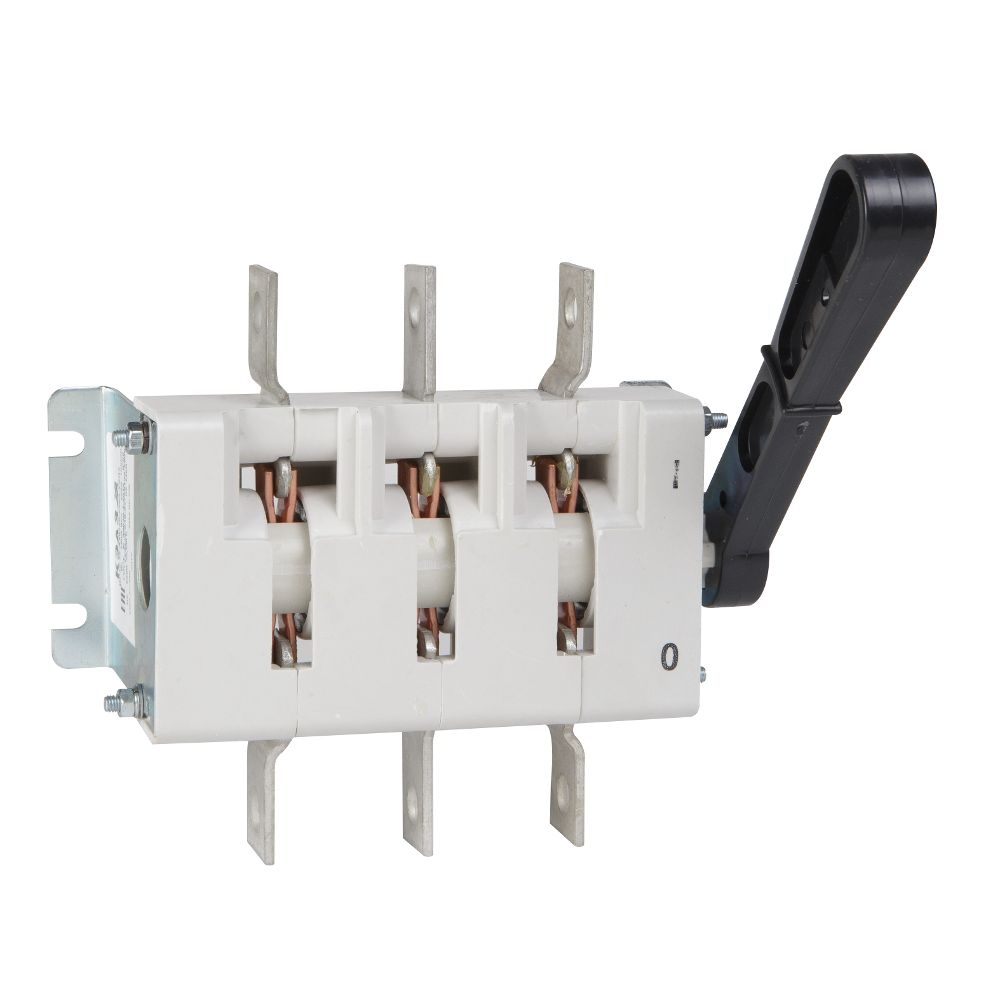 Выключатель-разъединитель 3 полюсный на номинальный ток 630 А, в котором установлена несъемная рукоятка.