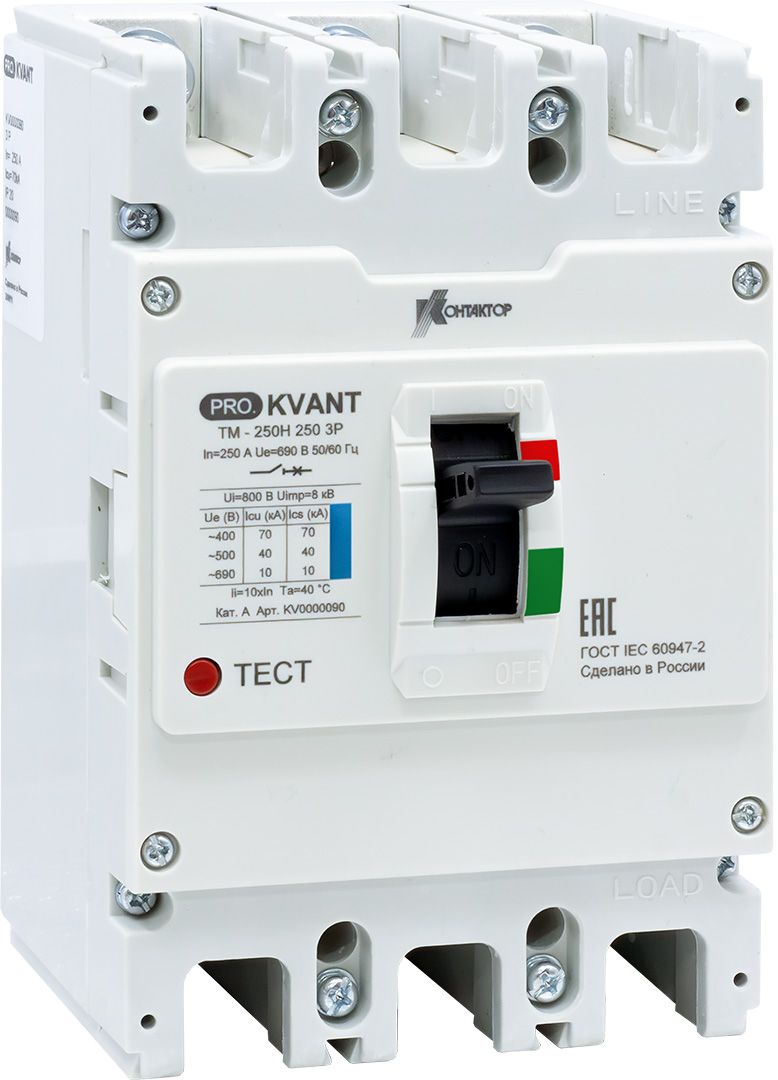 Читать все статьиАвтоматический выключатель PRO.KVANT TM-250S 3P 125A 50kA