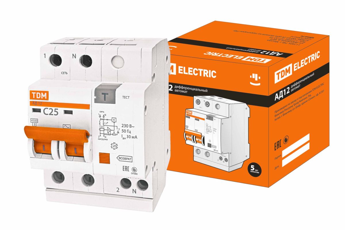 Читать все статьиДиф.автомат АД12 2Р 25А 30мА TDM