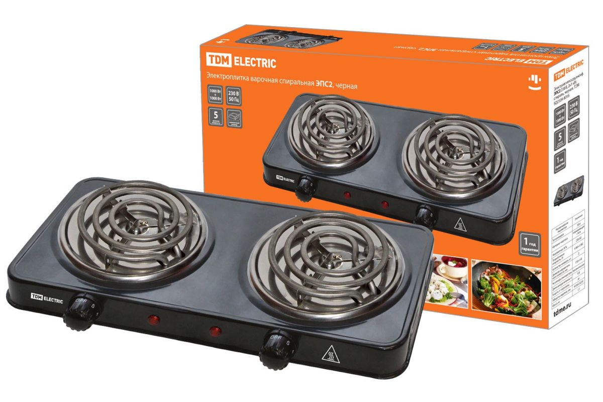 Электроплитка двухконф. ЭПС2 230 В, 2х1 кВт, спираль, черная, TDM