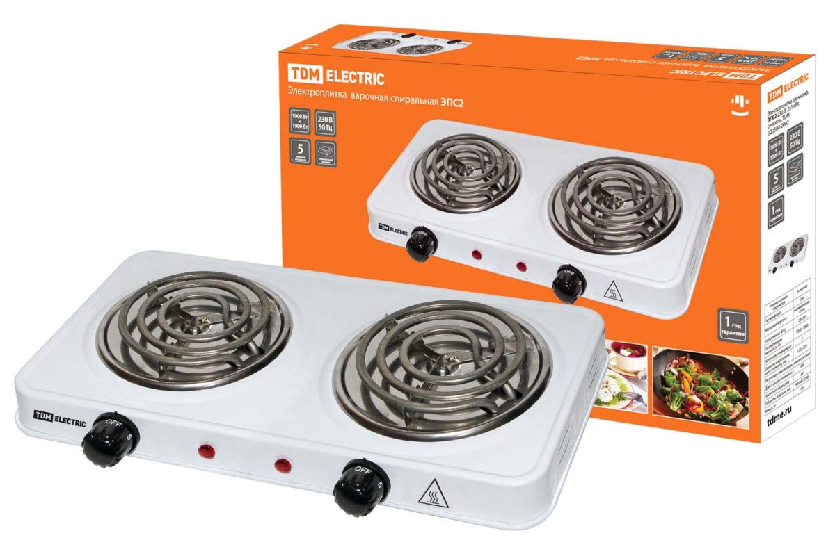 Читать все статьиЭлектроплитка двухконф.ЭПС2 230 В, 2х1 кВт, спираль, белая, TDM