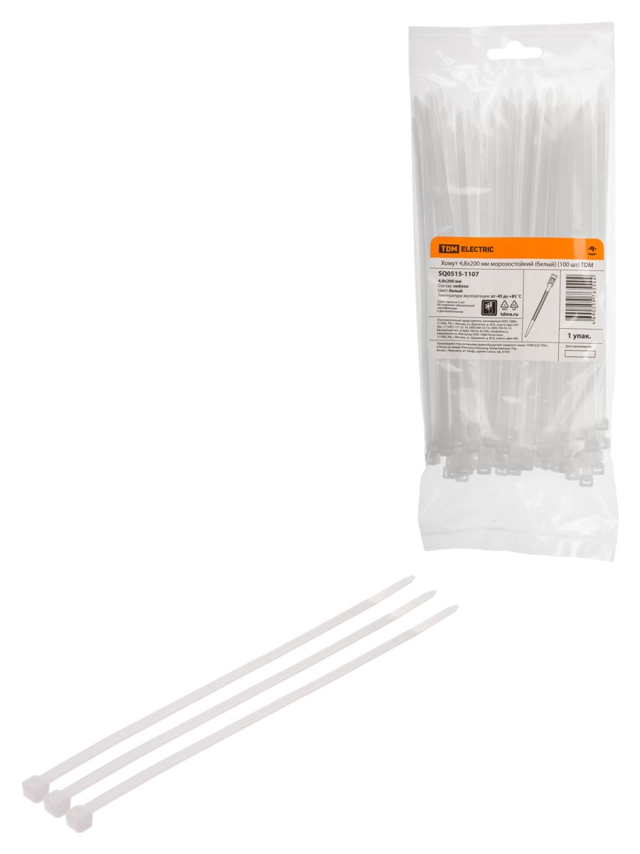 Хомут 4,8х200 мм морозостойкий (белый) (100 шт) TDM
