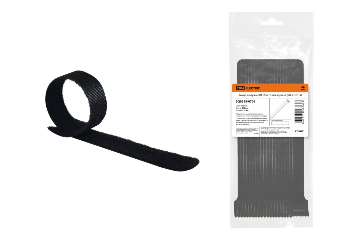 Хомут-липучка ХЛ 16х210 мм черный (20 шт) TDM