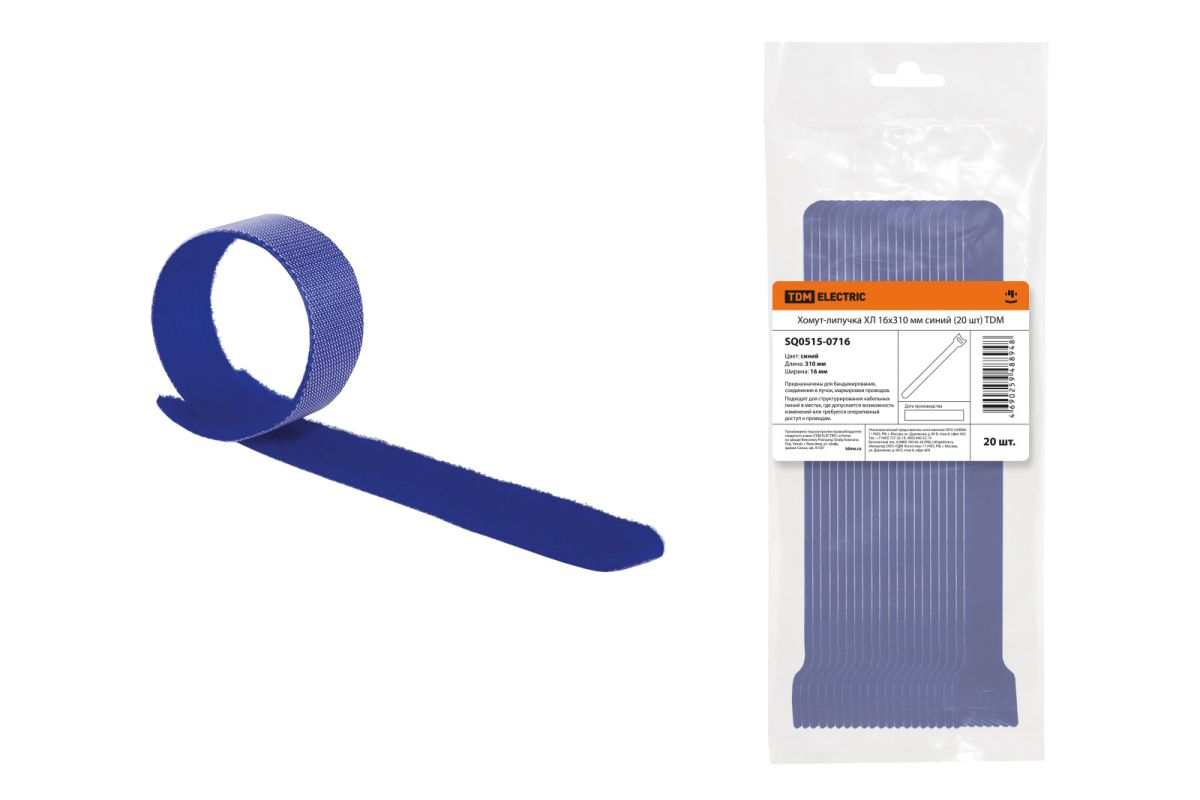 Хомут-липучка ХЛ 16х310 мм синий (20 шт) TDM