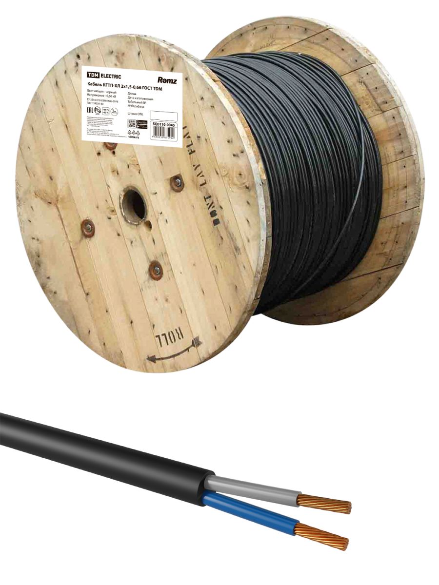 Читать все статьиКабель КГТП-ХЛ 2х1,5(N)-0,66 - 3 ГОСТ TDM