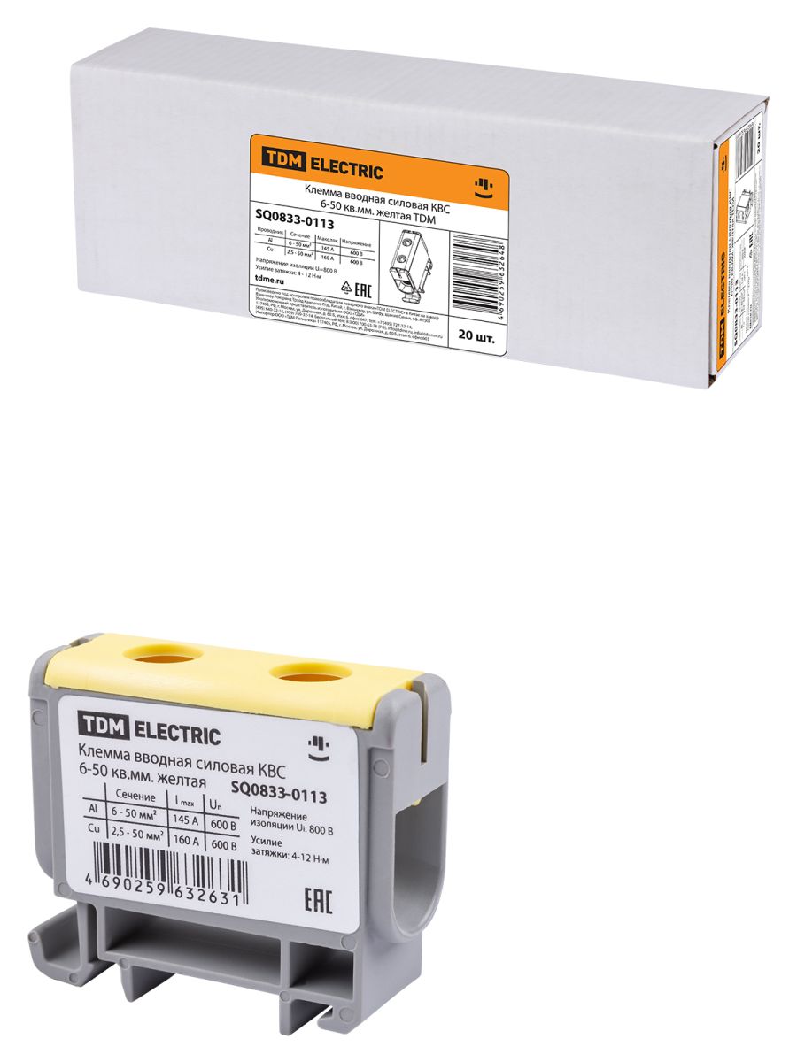 Каталог / ООО «ТДМ» / Товары TDM / 08-1 Аксессуары для шкафов и щитов / 08.33.01 Клеммы вводные силовые КВС