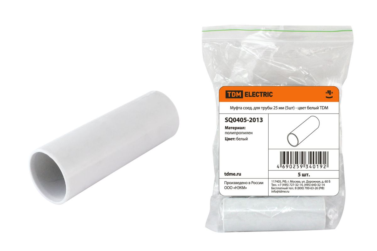 Читать все статьиМуфта соед. для трубы 25 мм (5шт) - цвет белый TDM