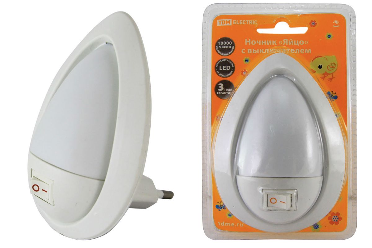 Читать все статьиНочник «Яйцо» с выключателем, белый, 0,5 Вт, 220 В TDM