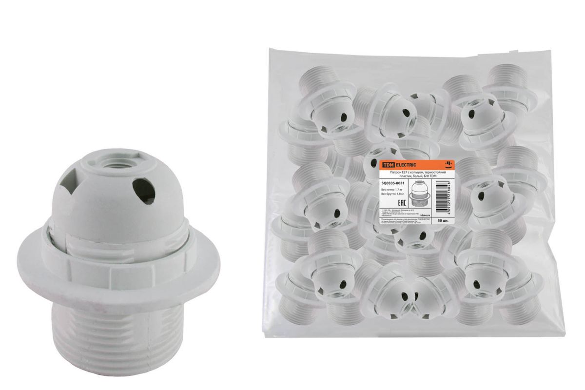 Читать все статьиПатрон Е27 с кольцом, термостойкий пластик, белый, Б/Н TDM