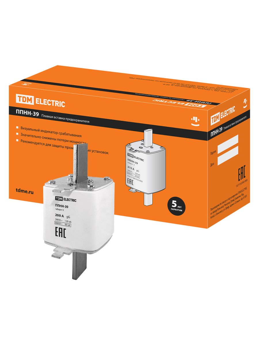 Читать все статьиПлавкая вставка предохранителя ППНН-39, габарит 3, 200А TDM