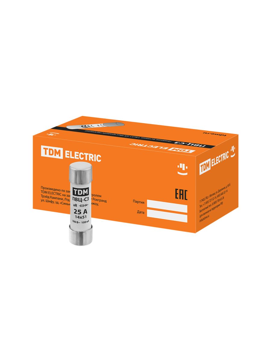 Читать все статьиПлавкая вставка ПВЦ-С3 14х51 aR (быстродействующая) 25А TDM
