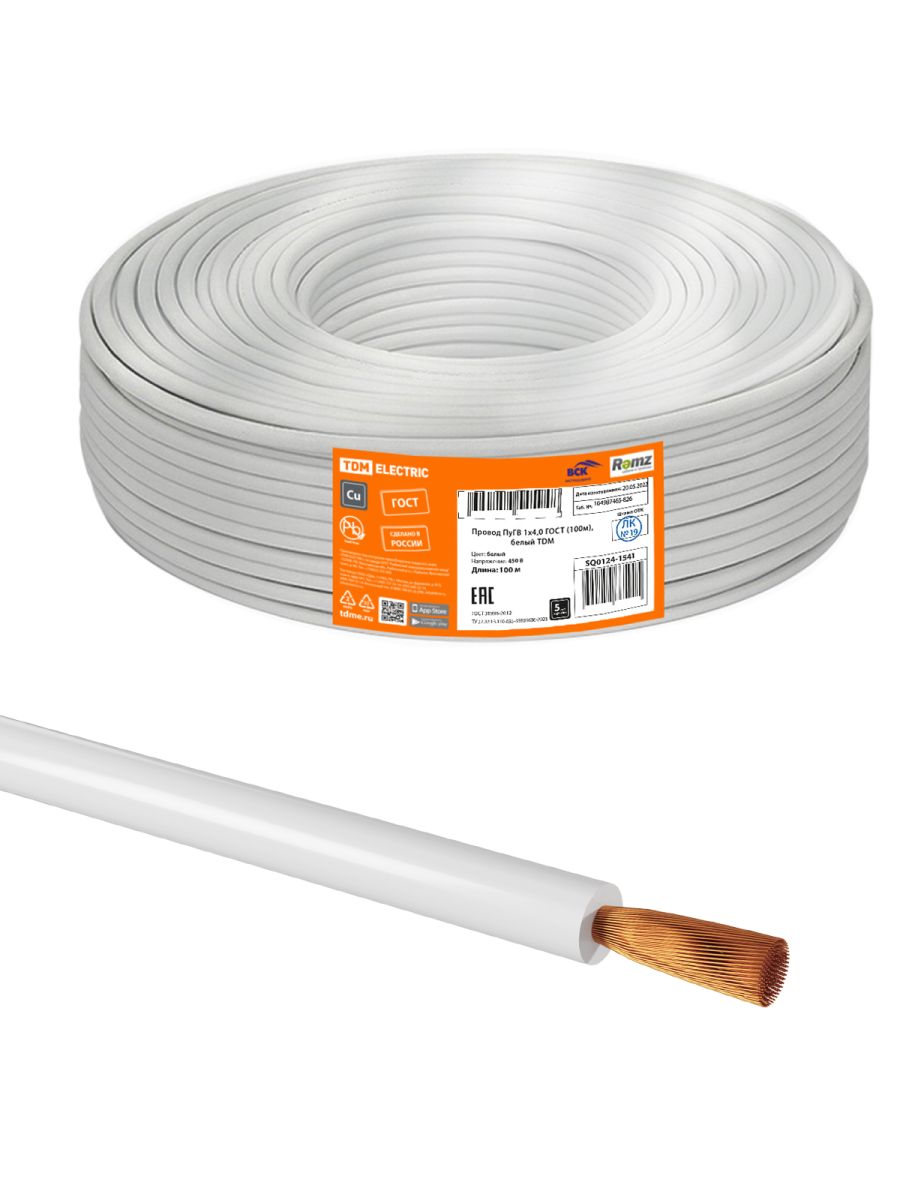 Читать все статьиПровод ПуГВ 1х4,0 ГОСТ (100м), белый TDM
