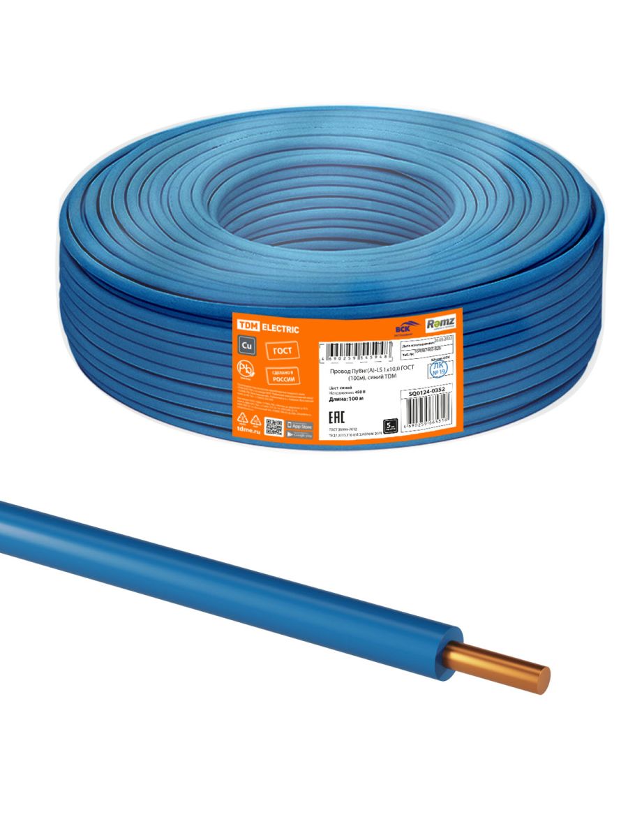 Провод ПуВнг(А)-LS 1х10,0 ГОСТ (100м), синий TDM