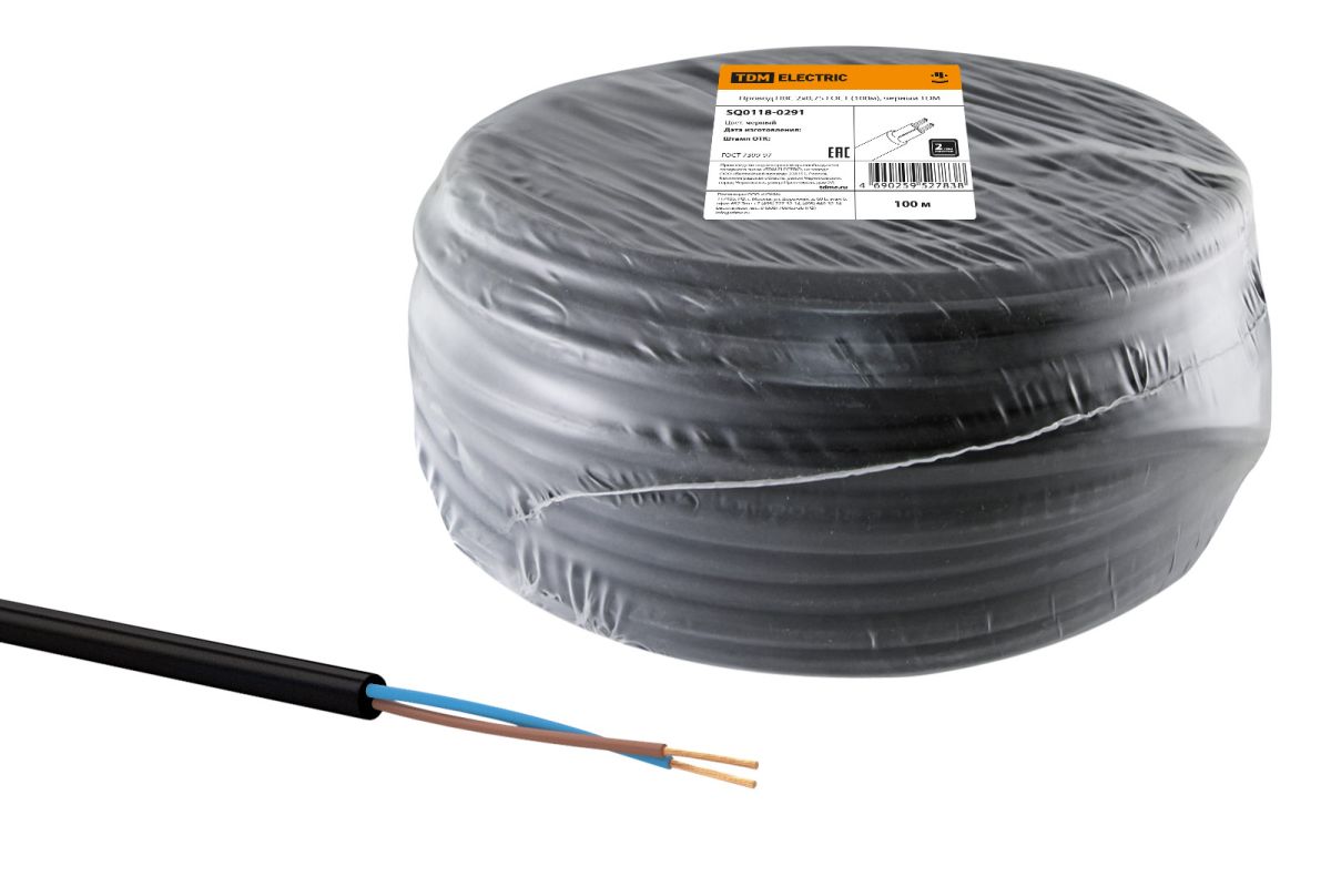 Читать все статьиПровод ПВС 2х0,75 ГОСТ (100м), черный TDM