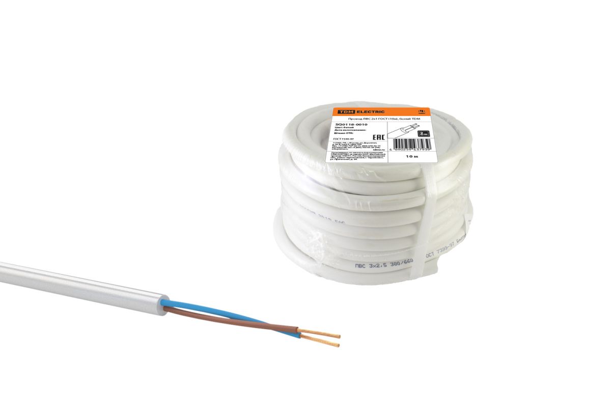 Читать все статьиПровод ПВС 2х1 ГОСТ (10м), белый TDM