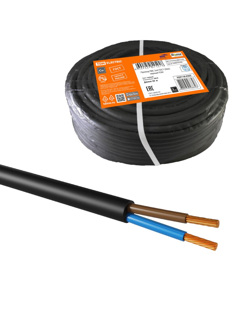 Провод ПВС 2х4 ГОСТ (50м), черный TDM