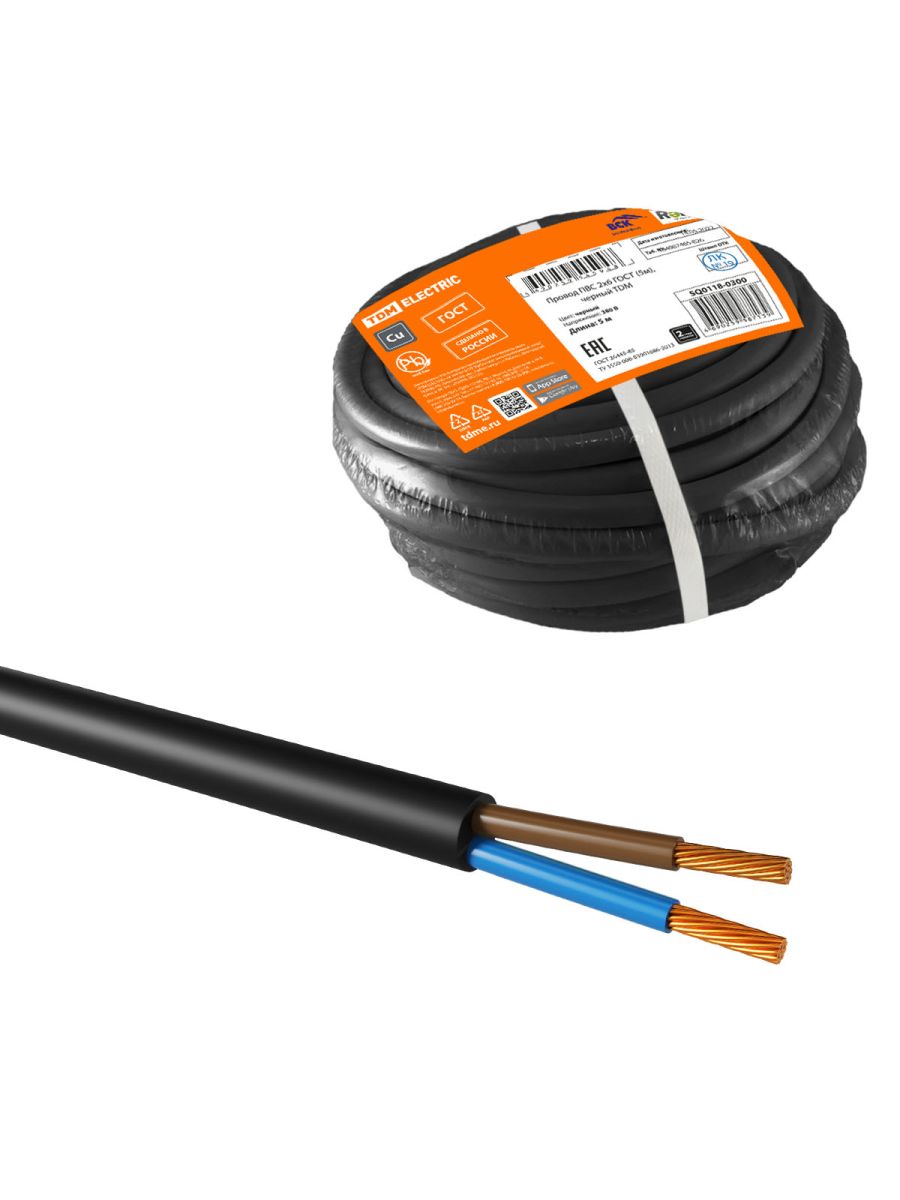 Читать все статьиПровод ПВС 2х6 ГОСТ (5м), черный TDM