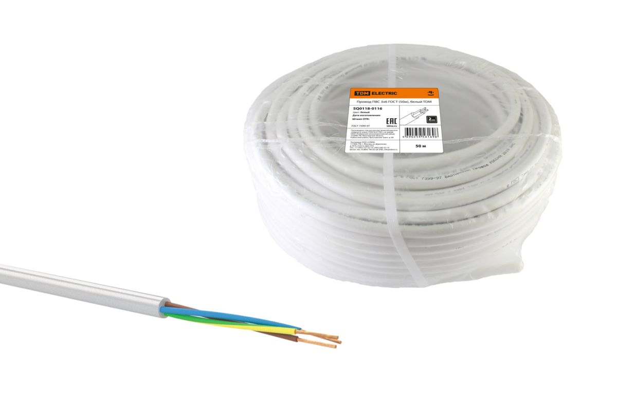 Читать все статьиПровод ПВС 3х6 ГОСТ (50м), белый TDM