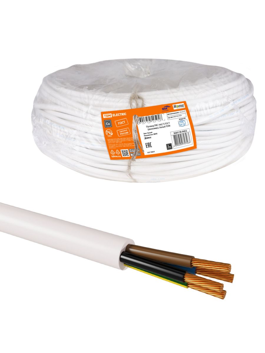 Провод ПВС 4х0,75 ГОСТ (разномер), белый TDM