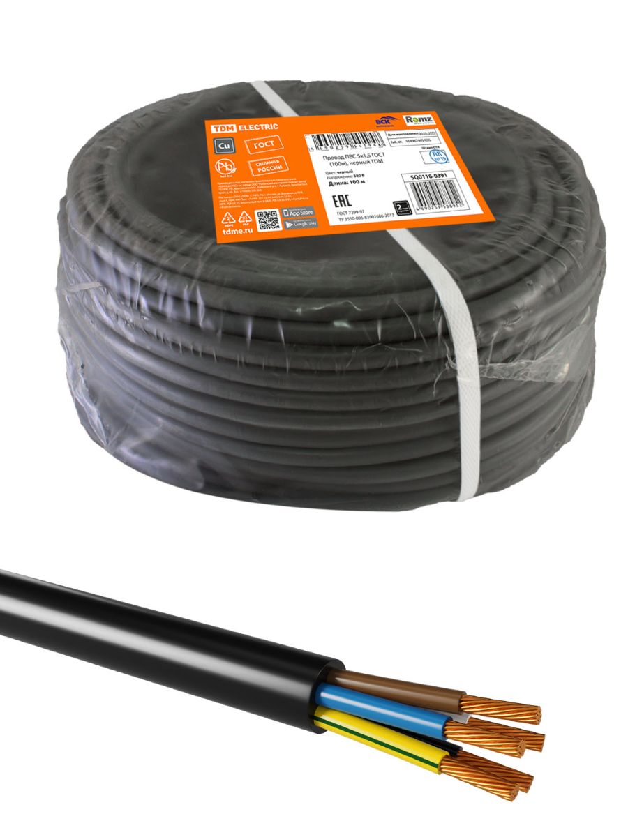 Читать все статьиПровод ПВС 5х1,5 ГОСТ (100м), черный TDM