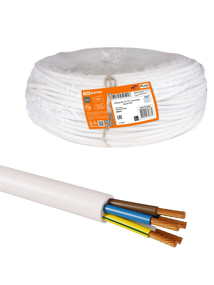 Провод ПВС 5х1 ГОСТ (разномер), белый TDM
