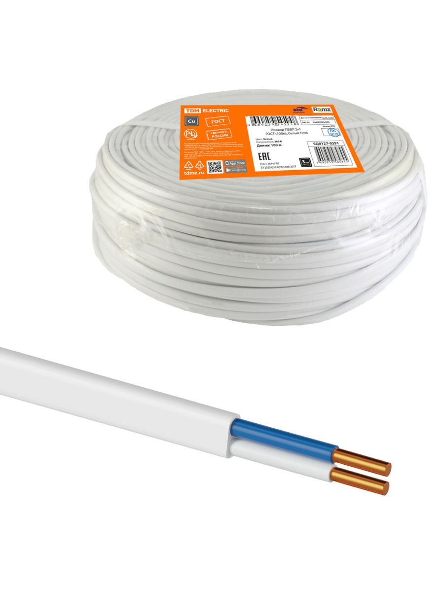 Провод ПВВП 2х1 ГОСТ (100м), белый TDM