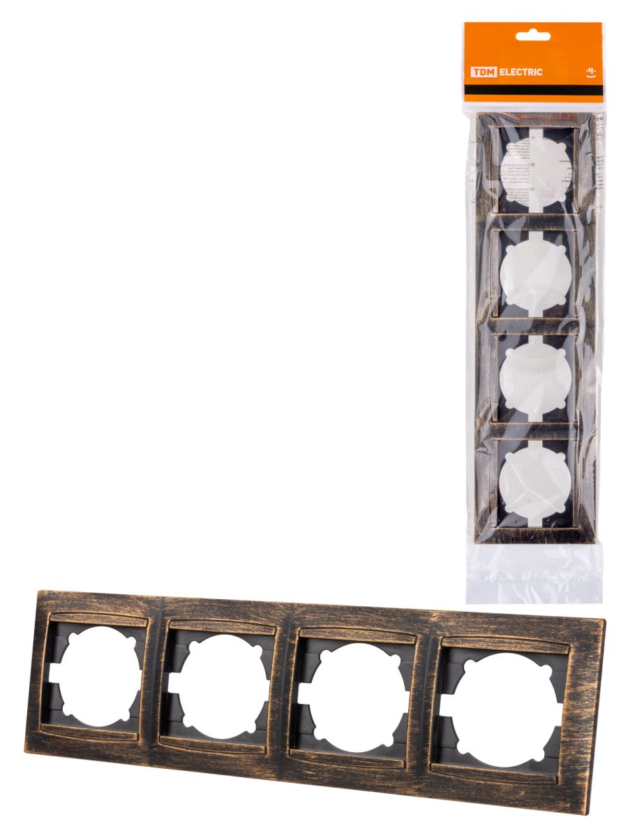 Рамка 4-х постовая горизонтальная старинная бронза «Лама» TDM