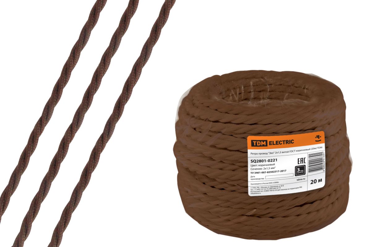 Читать все статьиРетро провод «Эко» 2х1,5 витой ГОСТ коричневый (20м) TDM