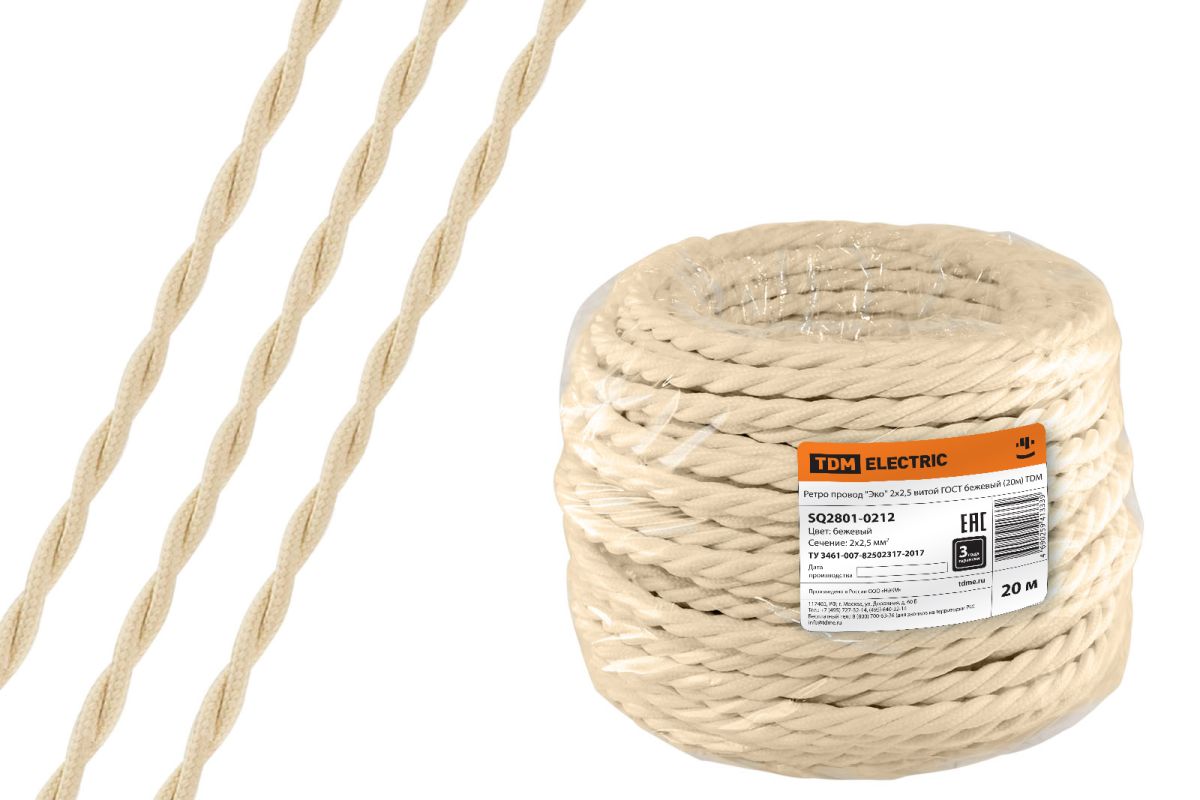 Читать все статьиРетро провод «Эко» 2х2,5 витой ГОСТ бежевый (20м) TDM