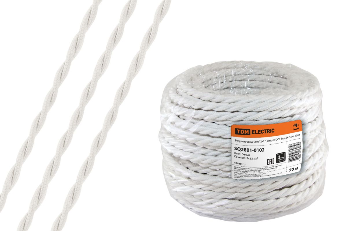 Читать все статьиРетро провод «Эко» 2х2,5 витой ГОСТ белый (50м) TDM