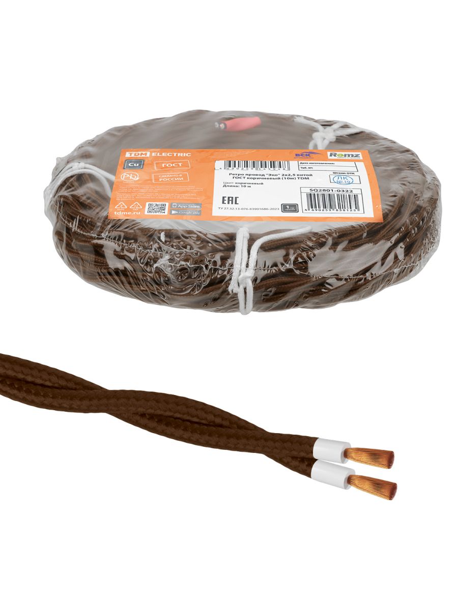 Ретро провод «Эко» 2х2,5 витой ГОСТ коричневый (10м) TDM