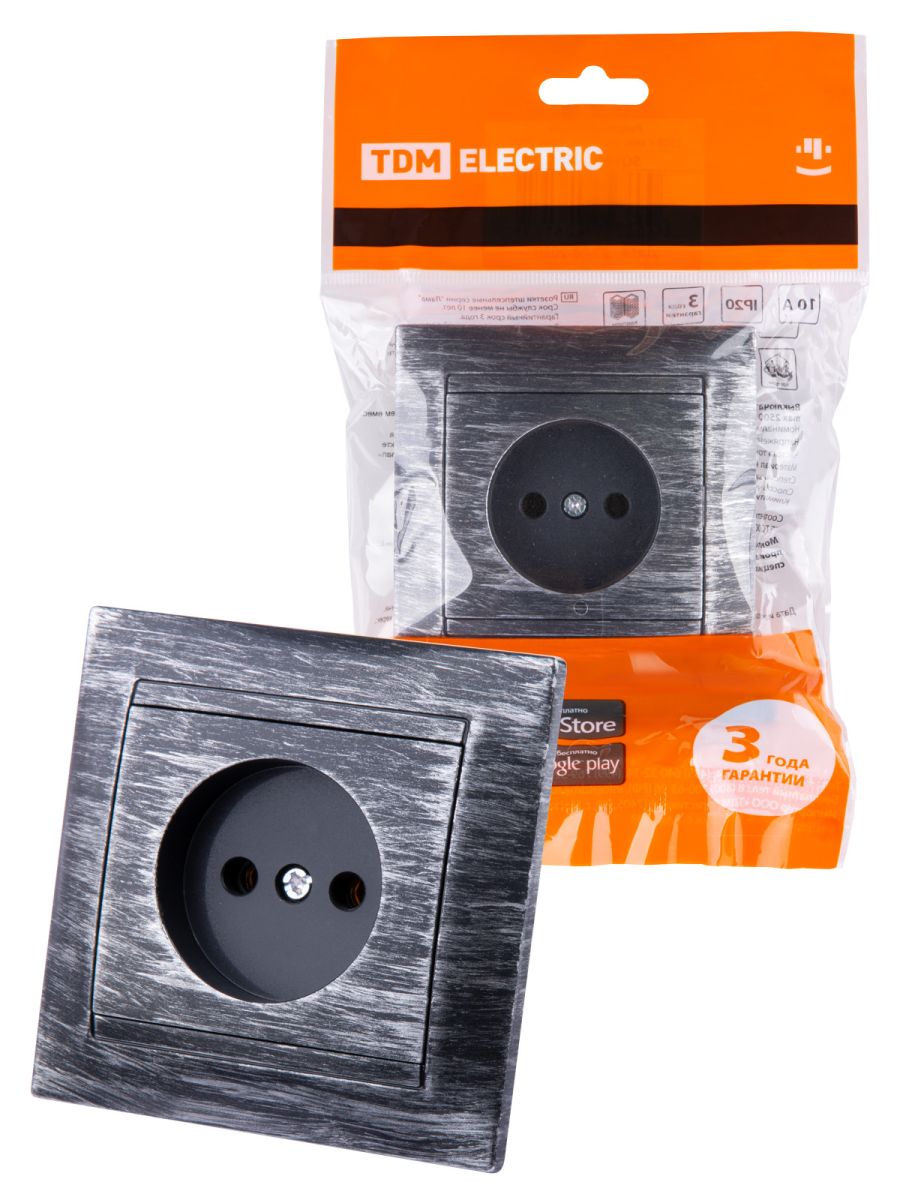 Розетка 2П 10А 250В старинное серебро «Лама» TDM