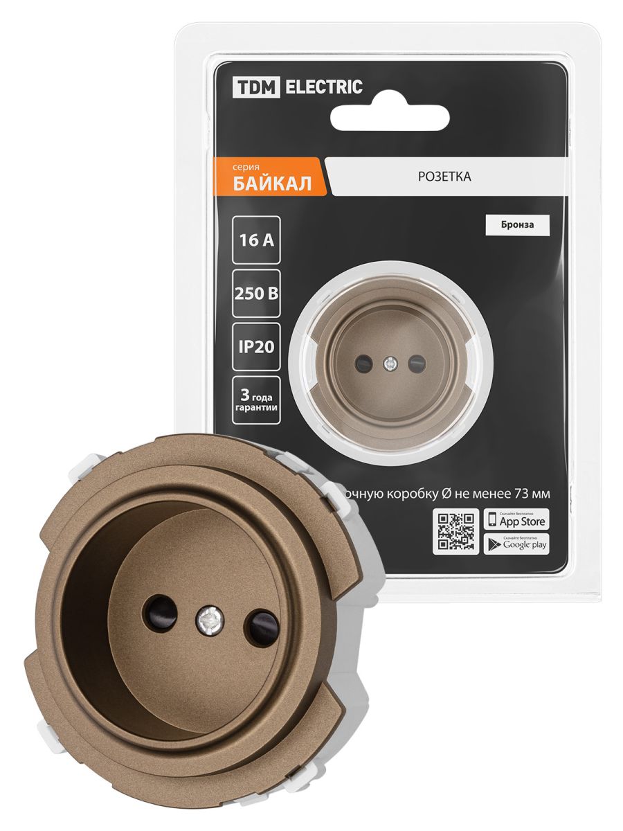 Розетка 2П 16А 250В с защ. шт. бронза, «Байкал» TDM