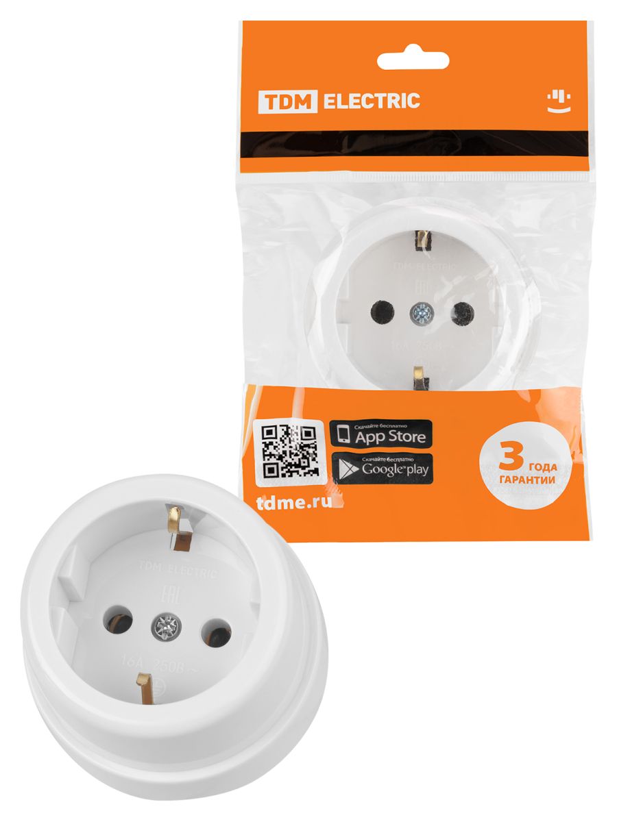 Розетка 2П+З открытой установки IP20 16А белая «Ретро» TDM