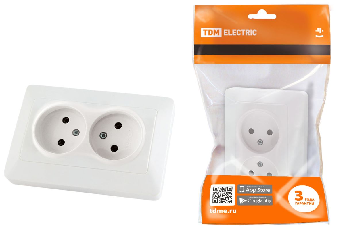Розетка двойная 2П 10А 250В белая «Ильмень» TDM
