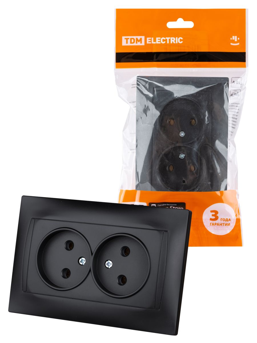 Розетка двойная 2П 10А 250В графит «Лама» TDM