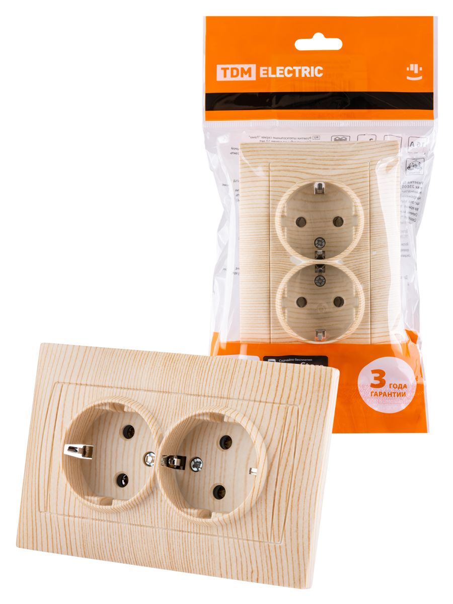 Розетка двойная 2П+З 16А 250В сосна «Лама» TDM