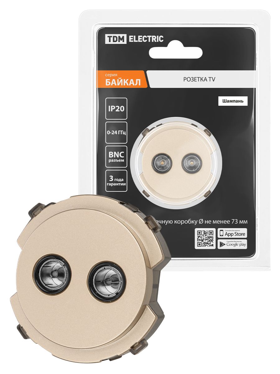Розетка двойная TV проходная шампань, «Байкал» TDM