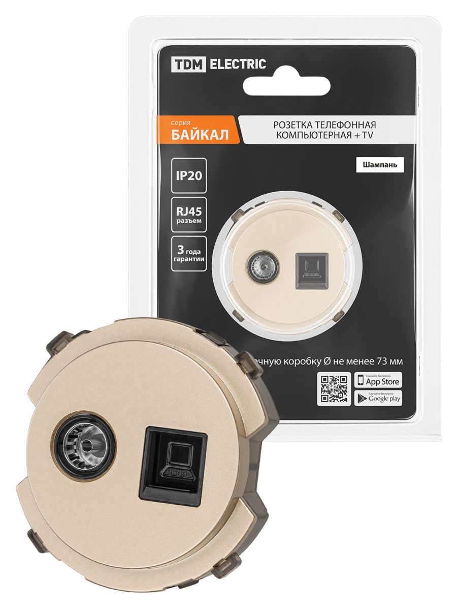 Розетка компьютерная RJ45 + TV розетка оконечная шампань, «Байкал» TDM