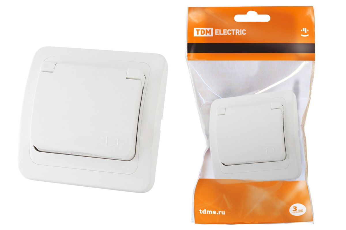 Читать все статьиРозетка с крышкой 2П+З 16А IP44 белая «Валдай» TDM